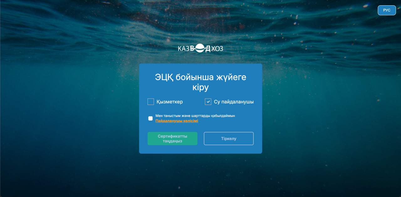 Су пайдаланушының тіркелуі